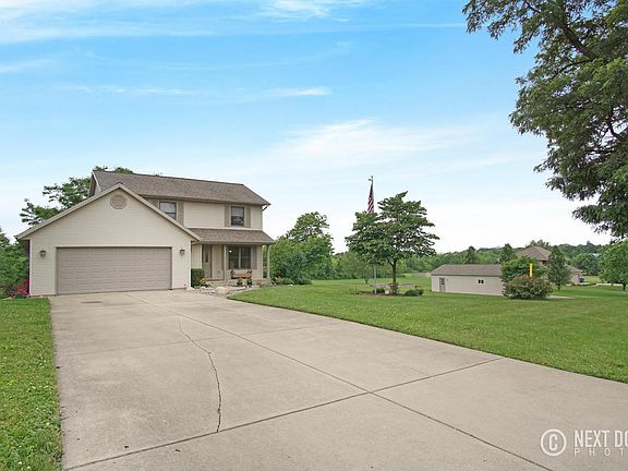 This 4 Bd, 3.5 Ba 2000 sq.ft. home may look like a traditional house from the front but once you walk in you will realize that with it's 3 story open staircase, lg windows and daylight walkout lower level this is a modern very sun light filled home. EXTREMELY well maintained it is absolutely move-in ready. Beautiful hardwood & ceramic floors. High-end stainless appliances ($4,000 Viking frig). Great guest area with 4th Bd/3rd Ba. Sit out on the deck & enjoy the peaceful 1.61 acres country setting with meticulously kept yard designed for easy care. Additional 40x24 stick-built (2005) 'house quality' garage with it's sparkling floors, bright interior, gas forced air furnace and hot water is a dual purpose gathering/party spot or garage/shop. 3 hip-high raised garden beds for easy gardening