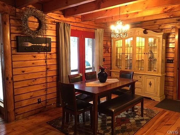 A Norman Rockwell Setting... Gorgeous and Private. Log Cabin w Pole Barn. Open concept; Kitchen, Dining, Family Room and Sunroom with Stone - Electric Fireplace.... First floor Den, possible 4th bedroom.. With full bath down... 3 Spacious Bedrooms upstairs with another full Bath.... Gorgeous Hardwood Floors.... Poured wall insulated walk out basement, ready to finish w /picture window. Enjoy the savings from an outside Wood Boiler System, for heat and hot-water. Also a forced air furnace with air conditioning. Did I mention the get-away hunting cabin in the woods. All on 34 acres, with 3 separate deeds. 9 acres with House and hunting cabin. 1 acre with separate Pole Barn, and additional 24 acres across the street. With a Brook running thru the Property. It's Beautiful!