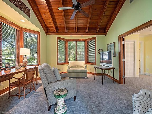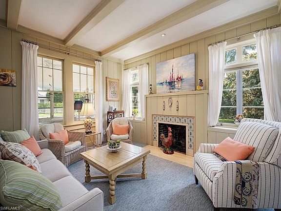 Nestled on the beach block right in the heart of Olde Naples, this historic Florida cottage offers timeless charm on a spacious 100’ x 151’ corner lot. Built in 1940 and crafted from locally milled heart pine and cypress, the home embodies the inviting coastal lifestyle that first drew families to Naples. Inside, a wood-burning fireplace warms the combined living and dining room, while French doors, vaulted ceilings, and a sun-filled solarium add character and comfort. The master suite includes a sitting room and library/media space, complemented by two guest bedrooms and a newly remodeled kitchen overlooking lush gardens. A detached garage with a one-bedroom guest apartment provides additional flexibility. With its enviable location on the beach block, this residence offers a rare opportunity to enjoy classic Old Naples living or to reimagine the site for a future luxury home.