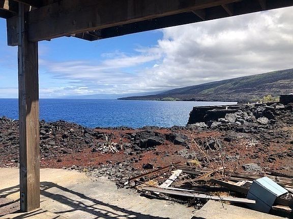 Located on the southern extension of Kai Street, this oceanfront lot is situated such that nature provided the absolute perfect place, commanding a view northward to Napoopoo (point) Bay And on a clear day you can see Maui. The lot’s ocean frontage is like a battleship’s bow (literally) shedding of any storm swells to the coves on both sides...this lot is dry and water free during the worst south-western Kona storms that generate huge swells, displaying the grandeur of nature. The former dwelling’s (unfortunately succumbed to a house fire) foundations and improvements are the perfect canvass to reconstruct the custom residence with state of the art materials in the design that suits your life style. Original house plans available 4/3 2 Master bed rooms and 2 junior bedrooms. Foundational components include: * 'Ili'ili, small, water-worn stones, chosen for their smoothness, shape and feel surround and provide a barefoot walkway around the slab. * Slab on grade with over 130 yards of concrete * Concrete driveway to existing covered concrete carport * Fiberglass 5K covered Catchment Tank * Plumbing - in slab wastewater to cesspool * Concrete pathway to ocean front point * Electric SSPP paid in full and power available for construction - temp meter Ask the old-time-ship residents of Milolii and you will hear them say this lot is the choice lot of all ocean front lots on Kai Street. All that is wanting, is your vision for the home you want to surround yourself in. The groundwork is in place...let your imagination complete your dreams...Come live in Hawaii, enjoy the Life - Why not!?!?!