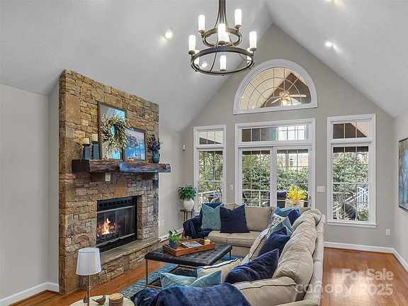 Welcome to this elegant, custom-built home nestled in a gated community. The spacious living room features soaring cathedral ceilings and a stunning stone fireplace, creating a warm and inviting atmosphere. The eat-in kitchen offers a perfect space for casual dining, while the separate dining room is ideal for more formal occasions. The large primary suite is a true retreat, tucked away on the opposite side of the house from the other 3 bedrooms for privacy. This home offers plenty of space for family and guests, upstairs you'll find a large bonus room that could serve as additional sleeping quarters, a home gym, and a private office—perfect for whatever your lifestyle demands. Step outside to your own private oasis, featuring a beautiful covered porch with a tranquil waterfall flowing into a koi pond. Enjoy the outdoors on the large open deck, complete with a swim spa for year-round relaxation. The home also features a horseshoe driveway and is conveniently located near shopping.
