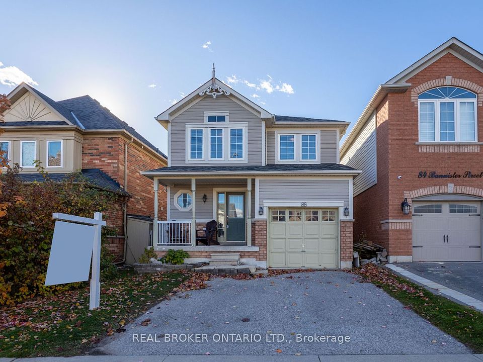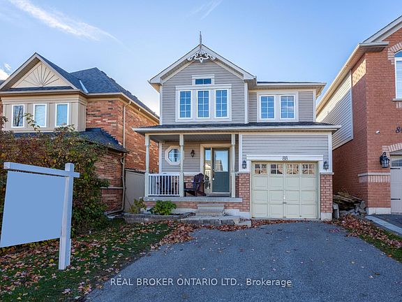 Welcome to 88 Bannister Street in a family-friendly, convenient Bowmanville location. Close to shopping, transit, restaurants, schools, parks and quick & easy access to Hwy 401. A warm and inviting 2-storey home that blends comfort, function, and thoughtful design. The exterior features: a charming covered front porch, a mix of brick and siding, and an attached single-car garage equipped with built-in shelving and loft storage for added convenience. Step inside to an open-concept main floor that's ideal for everyday living and entertaining. The dining area flows seamlessly into the living room, both finished with easy-care laminate flooring. The eat-in kitchen offers tile flooring, stainless steel appliances, ample cabinetry, and a walk-out to the fully fenced backyard, complete with a deck and swing set, perfect for relaxing or playtime. Off the front foyer, you'll find a practical main-floor laundry room with a laundry sink and shelving, as well as a convenient 2 piece bathroom. The spacious primary suite includes a walk-in closet and a 4-piece ensuite with a built-in medicine cabinet. Two additional good-sized bedrooms, with double closets, round out the second floor. The basement provides excellent potential and versatility, with two above-grade windows, built-in shelving, and plenty of storage space. This family-ready-home offers practical spaces and family-focused details throughout, all in a sought-after Bowmanville neighbourhood.