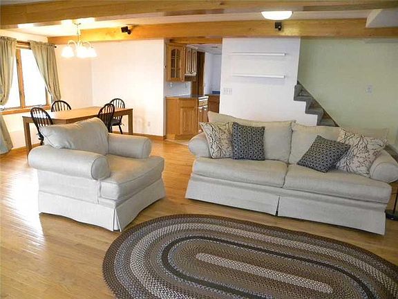 Waterfront 2 story home situated on Sabattus Lake. Beautiful mountain & water views with amazing sandy beach front. Great summer & ice fishing. Home offers open concept living w/updated oak kitchen, bathrm all with hardwood & tile floors. Generator included! Move in ready!