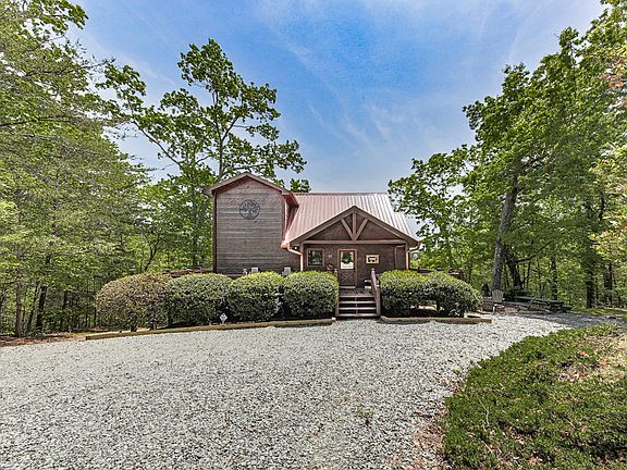 Experience breathtaking long-range mountain views from this fully furnished 3-bedroom, 3-bathroom cabin, located just 3 miles from downtown Blue Ridge and 5 miles from Lake Blue Ridge. Nestled in a gated community, this charming cabin is a perfect short-term rental with tons of upgrades, including new countertops, a metal roof, and a main floor with a gas log fireplace, cathedral ceilings, dining area, and guest bedroom with a bathroom. The private upstairs suite boasts a jetted tub and a covered balcony, while the lower level offers a third bedroom, bathroom, game room, and hot tub just steps away on the patio. The property includes a new washer and dryer, along with a custom-built firewood shed for added convenience. Relax by the firepit on the spacious, gently sloping lot, which provides plenty of privacy in this successful rental property. With natural light filling the cabin, this turn-key home is not to be missed! (Yearly due of $400 does NOT include access to Toccoa River. There is an additional fee of $400 for river access.)
