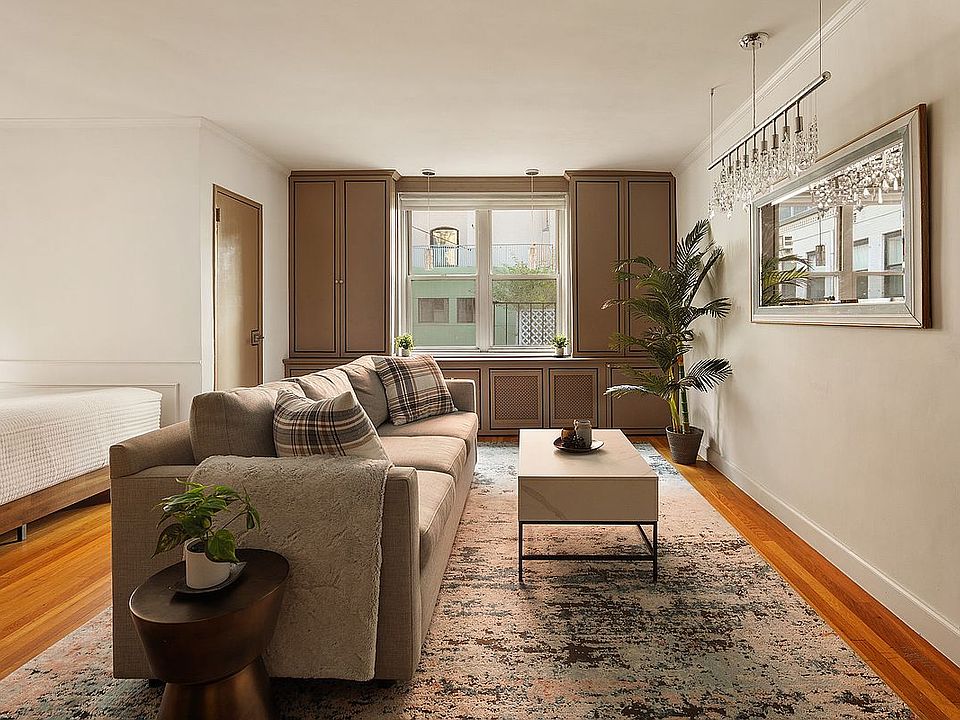 Welcome to Residence 6A, a top-floor penthouse alcove studio at 88 Bleecker Street that nails the balance of space, style, and functionality. Thoughtfully designed and beautifully bright, this home maximizes every inch — with sleek custom built-ins, a roomy entry closet, and a floor-to-ceiling shelving system with hidden drawers for all your city essentials.
