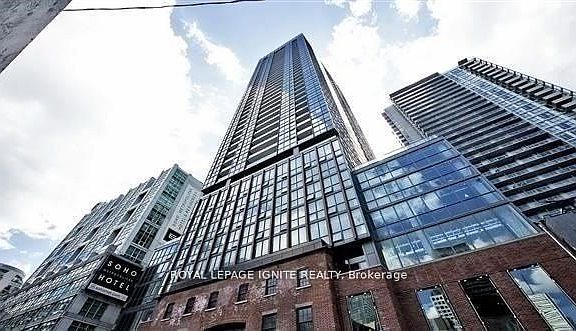 Located At The Prestigious Bisha Hotel In The Heart Of The Entertainment District In Downtown Toronto, A Elegant & Luxurious 1 Bdrm & 1 Bath Unit. Large Kitchen Island With Ample Storage, Granite Counter And Backsplash, Integrated Stainless Steel Appliances. Hardwood Floors. 9 Foot Exposed Concrete Ceilings. Bright Open Concept Layout. Floor To Ceiling Windows. Amenities Include Rooftop Lounge/Infinity Pool, Gym, Catering Kitchen & Ground Floor Cafe. Ensuite Washer-Dryer, Pet Walking, Dry Cleaning Services, Room Service Available From Bisha Hotel, Gorgeous City View. Close To Restaurants, Nightlife, Rogers Centre.