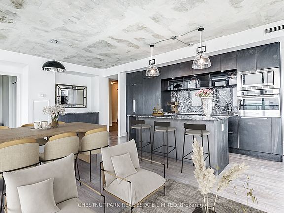 Unobstructed southwest views of the CN Tower and Toronto skyline from the 40th floor of the iconic Bisha Residences. 2 + 1 bed, 3 Bathroom, 1,502 sq ft with 1 parking & 1 locker. Floor-to-ceiling windows flood the space with natural light, open-concept layout offers flexibility for both everyday living and entertaining. Two outdoor balconies, Second balcony off Primary bedroom. Located in the heart of the Entertainment District, just steps from the city's best dining, nightlife, and culture. Residents enjoy access to world-class amenities, including a rooftop pool, fitness centre, and 24-hour concierge.