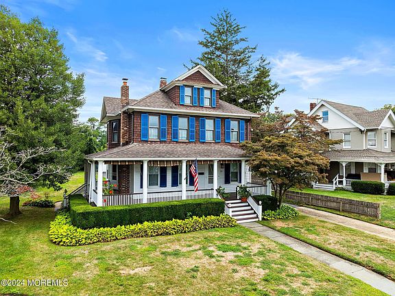 Welcome to this timeless 1900's home, brimming with charm and character at every turn, and located just a short 1.5-mile stroll from the sandy shores of Long Branch Beach. This 4 bedroom beauty captures the essence of classic design with its original doorknobs, rich wood trim, and gleaming hardwood floors that whisper stories of a bygone era. Upon entry, you'll be welcomed by a spacious foyer open to a living room adorned with a cozy wood-burning fireplace, framed by built-in bookshelves and elegant French doors—a perfect spot to relax and unwind. The formal dining room sets the stage for memorable gatherings as well as the bright eat-in kitchen with plenty of storage and pantry, complete with an island. A separate entrance leads to the practical mudroom, leading to a full bathroom making beach days even easier. Venture upstairs to find four spacious bedrooms and another full bathroom with a tub. The third floor leads you to the full walk-up attic, a blank canvas ready to be transformed into a home office or studio. With an unfinished basement perfect for storage, it offers the opportunity to be finished. This home has endless possibilities to make it your own. The allure continues outside with a stunning wrap-around front porch, ideal for enjoying morning coffee or evening cocktails with friends. The wide lot provides ample yard space for outdoor fun, gardening, or simply soaking in the sunshine. A detached garage offers additional storage or a space for weekend projects. Close to outstanding restaurants, Pier Village, public transportation, as well as easy access to Hwy 35. An amazing opportunity to own a piece of history near the shore.