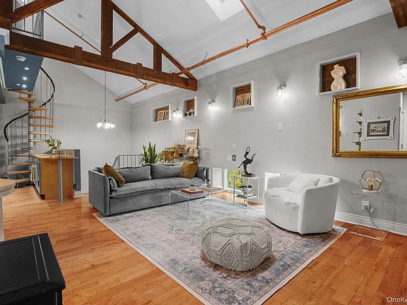 Discover this stunning penthouse in Ossining’s landmark 1820s schoolhouse conversion, where SoHo loft vibes blend with Hudson Valley charm. With dramatic architectural lines including soaring ceilings, exposed brick, wood beams, copper piping, and clerestory windows, every detail tells a story. The open-concept main level features a sunlit living room, elevated kitchen with granite counters and stainless appliances, and a designer half bath. Upstairs, a loft provides the perfect flex space for an office or guest area. The lower level offers two ensuite bedrooms with high ceilings and oversized windows, including a spacious primary suite with walk-in closet and spa-inspired bath. Private washer and dryer in home and on-site storage. Two assigned parking spaces included. Within a few blocks to the shops, cafes, Metro-North, Ossining’s beautiful Hudson Riverfront with marinas, Old Croton Aqueduct Trail, and Ossining’s vibrant downtown scene.