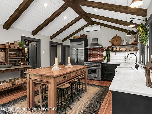 Additional features include a detached two-car garage, recent upgrades to the HVAC, HWH, & roof, ample basement storage, and a private basketball court. This idyllic homestead is conveniently located within proximity to the ferry, downtown Atlantic Highlands, and area beaches. This truly is a unique offering and a once-in-a-lifetime opportunity to make this farmhouse your own!