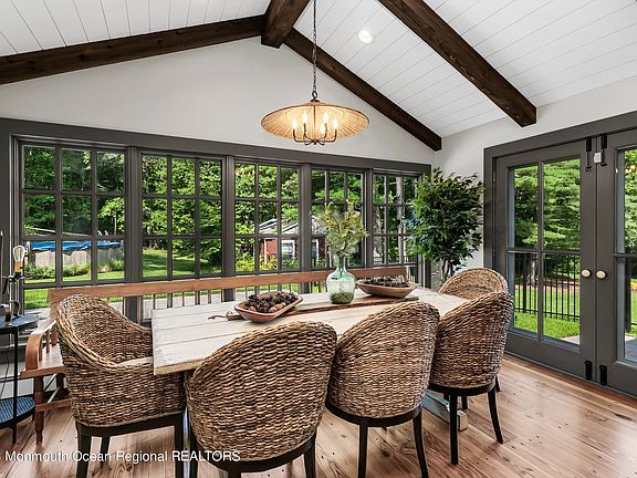 Welcome to your private haven nestled within 4.9 scenic acres, bordered by Huber Woods and Scudder Preserve. This sensational farmhouse spans more than 3,000 square feet of elegantly designed living space and comes complete w/ a separate 480 sq ft guest cottage. As you traverse enchanting, landscaped paths leading to a covered front porch, you're welcomed into a charming interior emanating a timeless appeal. The first floor features a cozy, sunken LR adorned w/ elegant brick flooring, a FR boasting beamed ceilings paired w/ a wood-burning fireplace, and a spacious DR accentuated w/ French doors that open to a serene back deck. The eat-in, Chef's kitchen offers custom inset cabinetry, marble countertops, a 6-burner Thermador range, vaulted/beamed ceilings, & a generous walk-in pantry w/ ample shelving and add'l refrigerator drawers.