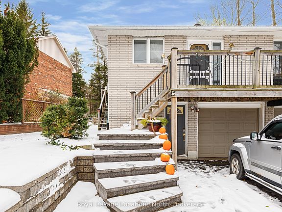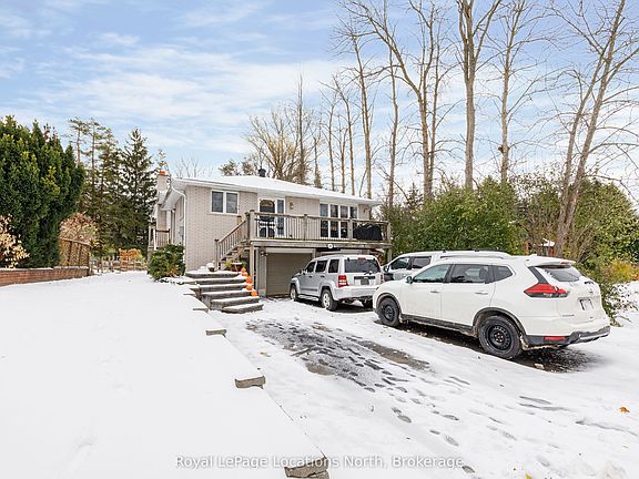 Spacious home and lot in a sought-after neighbourhood, just steps from schools! Over 2,300 sq.ft. of living space, this home features 3 bedrooms and 2 bathrooms upstairs with a separate 1 bedroom and full bathroom in-law suite on the main level, perfect for extended family or guests. The upper level features a bright eat-in kitchen that opens to a large living/dining room with tile and luxury vinyl floors. Enjoy a cozy gas fireplace and office nook in the family room. Other highlights include main-floor laundry, and a large primary bedroom with a 5-piece en suite. The deck and patio are perfect for outdoor entertaining in the private, fenced, and treed backyard offering plenty of space. Plus, a double garage with inside entry for convenience and plenty of parking in double paved driveway. Just a short drive to downtown Collingwood, Blue Mountain, and the stunning shores of Georgian Bay.