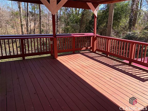 Adorable clean home located in Oconee County ! This home has a split foyer with the master bedroom and a second bedroom upstairs along with two bathrooms. Kitchen and living area fill the downstairs as well as a third bedroom and a half bathroom. Beautifully remodeled split level with hardwood and tile flooring. Custom tiled bathrooms. I refrigerator, dishwasher, stove, and dishwasher and dryer. Walk out onto the huge covered rear deck that would be great for entertaining. Large fenced back yard ! Great location conveniently locatedclose to downtown Watkinsville, Post Office, Grocery Stores and Library.