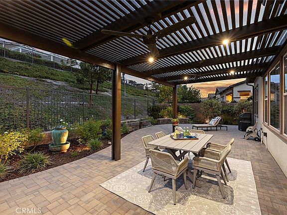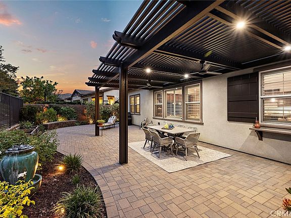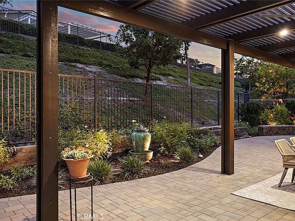 Welcome to this beautifully upgraded single-story home, in the coveted 55+ enclave of Avocet, ideally situated on an oversized, private lot. Offering two bedrooms, two full bathrooms and an office or flex room, this residence is designed for easy living and effortless entertaining. Inside, the open-concept floor plan features a striking built-in media wall with generous storage, plantation shutters, and a spacious dining area. The chef’s kitchen showcases upgraded stainless steel appliances, granite countertops, a convenient wine refrigerator, and a full wall of pantry cabinets with roll-out shelving. The serene primary suite offers a beautiful view of the expansive backyard and includes a spa-inspired ensuite bath with an oversized soaking tub, a frameless glass shower, and a walk-in closet with premium custom shelving. A comfortable guest bedroom and a spacious home office provide flexibility for hosting or working from home. Step outside to your private backyard retreat—complete with lush gardens, custom pavers, a trickling fountain, and a covered pergola with built-in lighting and ceiling fans. Enjoy evenings by the outdoor fireplace, unwind in the above-ground spa, or entertain in the expansive covered outdoor room—this space is designed for both relaxation and gatherings. As part of the award-winning Rancho Mission Viejo community, enjoy access to an array of resort-style amenities: including The Hacienda and The Getaway, offering amenities like a fitness center, saltwater pool, spa, bocce ball court, yoga studio, and cozy fire pits.