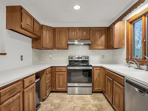 Welcome to this charming 3-bedroom home, nestled on a spacious 1+ acre lot. This lovely home boasts hardwood floors throughout the bedrooms and dining room and brand-new carpeting in the cozy living room with a wood stove, ideal for relaxing with family and friends. Enjoy the expansive, eat-in kitchen, offering plenty of space for cooking and casual dining. For more formal occasions you'll appreciate the pellet stove in the dedicated dining room. This home also offers a bonus sunroom off the eat-in kitchen. Downstairs, an unfinished basement provides excellent potential for future expansion, the laundry area and the entrance to the two-car garage. The septic system was replaced in 2016. With plenty of outdoor space to enjoy, this property offers endless possibilities for your new home!