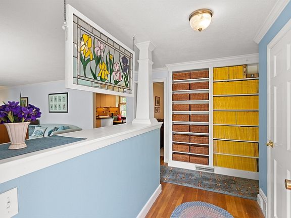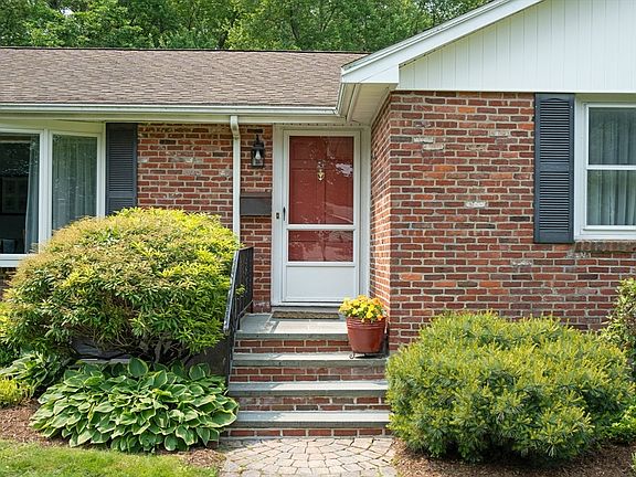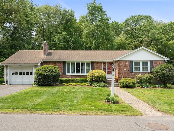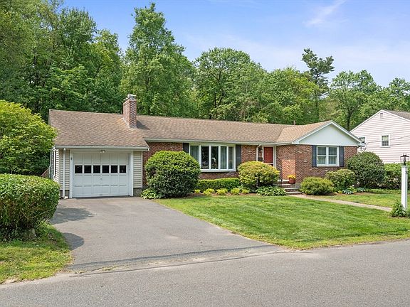Offer deadline noon Tuesday 6.10.25. This updated brick-front ranch offers privacy and easy 1-level living in a lovely, tree lined neighborhood. A feature wall of bookcases & large living room with hardwood floors, crown moldings, & gas fireplace welcome you to this charming home. The thoughtfully designed & sophisticated kitchen with StarMark custom cabinetry, quartz counters, stainless-steel appliances & copper accents is one of the outstanding features of this home. The kitchen opens to a dining area with built-in banquette for entertaining. 3 bedrooms, a full bath, & garden room that opens to a deck complete the 1st floor. The lower level with laundry, workshop offers the potential for more finished living space. The backyard, certified by National Wildlife Federation, features gorgeous views of perennial border gardens, wildlife, and woods. This ideal location abuts conservation land and is close to shopping & restaurants at Legacy Place & major routes & the commuter rail