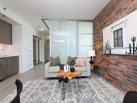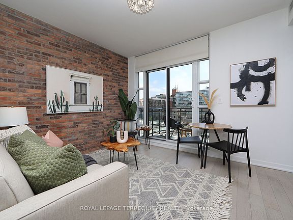 A rare find in the heart of Leslieville - this 1-bedroom corner suite wraps you in light from two exposures, north & east, thanks to an exclusive builder upgrade. At just the right height above the street, you'll feel the city's pulse yet enjoy your own quiet escape. Soaring 9-ft ceilings, a striking brick feature wall, and sleek stone counters set the stage for a home that's as stylish as it is comfortable. Sliding glass doors frame the bedroom, where a rare, large window floods the space with light - balanced by blackout blinds for those slow, indulgent weekends. Step onto your large, private balcony (not shared) with power and watch the neighborhood wake up. This suite includes a deeded parking spot, storage locker, and a bike storage locker - because life here calls for cycling to the market or down the Don Valley trails. The building's boutique charm comes with big amenities: a rooftop deck for sunset cocktails, a well-equipped gym, guest suites, concierge service, party room, theatre room, and visitor parking. Outside your door, Queen Street East buzzes with some of the city's best cafes, bars, and boutiques. Ascari, Crows Theatre, John Chang Park, and Jimmy Simpson Park are steps away, while the DVP and transit make Downtown or the Danforth feel impossibly close. This isn't just a home - its a front-row seat to the best of Toronto's east side. Stylish, effortless, and ready for your next chapter.