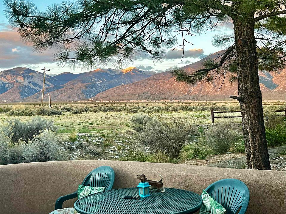 Modern Comfort and Mountain Views in El Prado, NM ~ This beautifully renovated and spacious 2-bedroom, 3-bath pet friendly condo at the well-located Quail Ridge Resort is perfect for full time, or part time resort-style living. The open living and dining areas flow seamlessly into a classy updated kitchen and bathrooms, all thoughtfully redesigned with modern materials for a fresh, welcoming feel. Three Southwest style fireplaces (2 wood, 1 gas) are ideal for creating a cozy environment, and relaxing around after a long day on the slopes. The unit also possesses very special artistic and hand-carved accents that ad to the rich charm of the home and short term rental guests will adore. Step out onto the large patio overlooking the tennis courts, with direct unobstructed views of Taos Mountain and Wheeler Peak. This versatile unit is perfect for long-term enjoyment or as a lucrative long term rental, complete with several convenient storage closets for all your gear. These units are versatile and can easily be used as an income producing property with one, or two lock-off units and ADA access. A washer and dryer are included, adding to the turn-key appeal. Enjoy all the Quail amenities with Low HOA dues, including snow removal, trash service, tennis, pickleball, swimming, and a hot tub. The onsite restaurant is a local favorite, known for the best breakfast burritos in Taos! Some photos have been virtually staged to spark creativity. With easy access to the Town of Taos, Taos Ski Valley, and the Rio Grande River, this condo offers an unbeatable blend of location, style, and comfort for glorious Taos living.