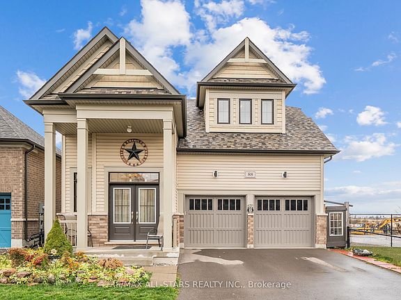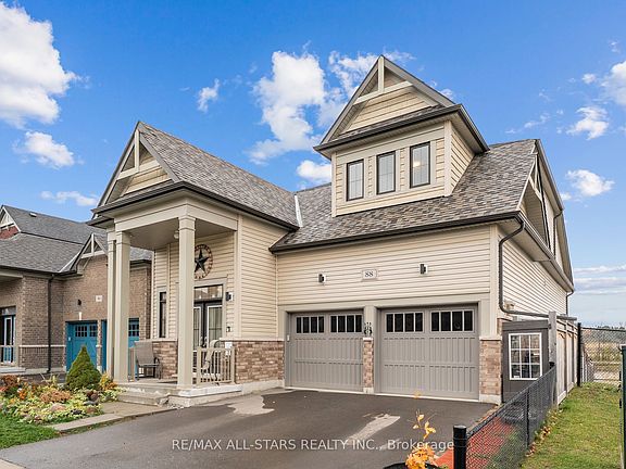 Welcome to your dream home! This 3 bedroom bungaloft sits on a premium walkout lot backing onto a scenic pond & conservation area. Imagine enjoying your morning coffee on the deck while watching graceful geese and swans from your own back yard. The builder is no longer building bungalows in this subdivision. Inviting covered porch leading you to a spacious foyer with powder room and access to 2 car garage. Bright , open concept layout featuring hardwood floors & large windows throughout that flood this home with natural light. The living room boasts a vaulted ceiling, pot lights, cozy gas fireplace, walkout to deck and open to the kitchen and dining room making it an ideal layout for entertaining. The spacious main floor primary suite offers a peaceful retreat with a walk-in closet and ensuite bath. A main floor den with French Doors provides the perfect space for a home office, library, nursery or guest bedroom. Upstairs, the loft overlooks the living area below and includes 2 bedrooms and 2 bathrooms. The partially finished walkout basement is bright and awaiting your finishing touches - ideal for an in-law suite, extended family living or future recreation space. Enjoy the serenity of nature without sacrificing convenience-walk to playground, park, basketball court, walking trails, movie theatre, school, restaurants and close to Lake Simcoe and all essential amenities.