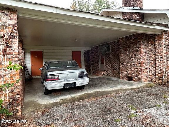 Spacious brick home in Quitman  on 1.40 acres, half-circle driveway. 3/2 and could be a 4th bedroom, small office or extra storage area.  Open  kitchen w/ lots of cabinets and informal eating area. Formal living and dinning combination. One storage room on carport. Outside covered patio, fenced in back yard, great for children or pets. Separate detached garage. Needs some TLC.Agents see private remarks.