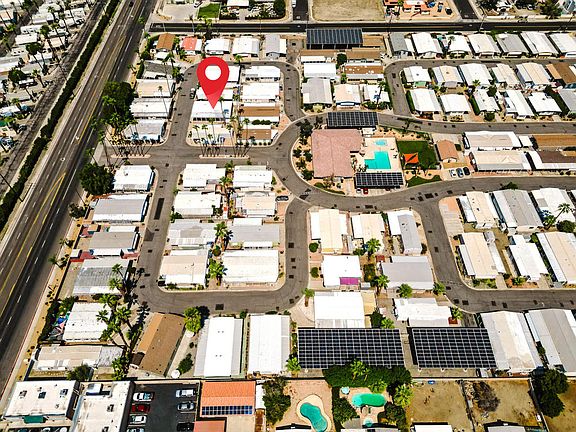 Welcome to this beautifully updated 3-bedroom, 2-bath mobile home offering 1,440 sq. ft. of comfortable living in a prime location close to shops, dining, and amenities. Freshly painted with a charming stucco exterior, the home boasts a bright, open floorplan that seamlessly connects the kitchen and living areas perfect for everyday living and entertaining. The spacious primary suite features an ensuite bathroom, while a second bedroom enjoys direct access to the hall bath, creating a flexible layout. One of the bedrooms is ideal for a home office, adding versatility to the space. The kitchen shines with solid-surface countertops and flows into the living area for a modern, airy feel. Each bedroom and the living room are equipped with efficient mini-split systems for personalized comfort. A brand-new patio welcomes you at the entrance, and the convenience continues with an in-unit washer and dryer. Enjoy your own private driveway with a covered carport, offering ease of parking and additional shade. This move-in ready home blends functionality, comfort, and location into one incredible package.