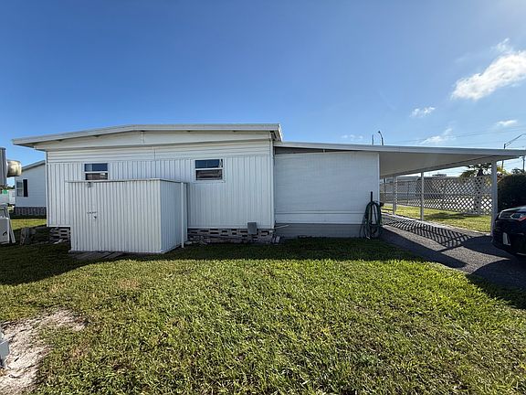 Spacious Corner Lot Home located in Imperial Manor a 55+ Community. This beautiful two-bedroom, two-bath home sits on an oversized corner lot with a convenient drive-thru driveway-large enough to accommodate three or more vehicles. A Florida room addition offers extra living space, and the home is being sold furnished just as shown in the photos. Inside, you'll find updated windows throughout, providing natural light and energy efficiency. The home is priced under market value due to the current roof not meeting insurance requirements. The metal roof is not leaking and the property is fully functional, currently being enjoyed as a seasonal snowbird residence. Lot Rent: $655/month - includes water and lawn maintenance. Please note: This section of the park is not pet-friendly. Community amenities include a welcoming and active lifestyle with access to a pool, water aerobics, clubhouse, bingo, card games, shuffleboard courts, and more.