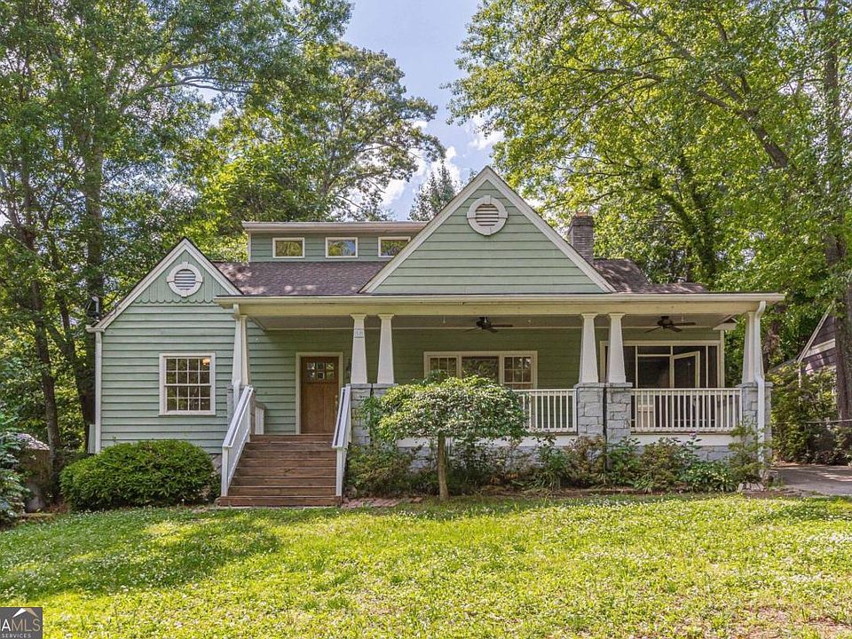 Discover your private retreat just around the corner from Oakhurst Village (without the Decatur taxes)! This expanded 1940's bungalow retains all the charm of its original design, complemented by an oversized top-floor primary suite featuring an expansive private outdoor deck with views over The huge backyard. The front porch and side screened porch delivers craftsman charm and a great place to enjoy the day. The lower level original hardwoods are in great condition. Freshly painted throughout makes the whole house light and airy. There is a detached garage and separate work shed. Walk to restaurants and shopping! Come see this lovely home today!