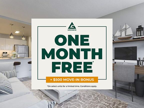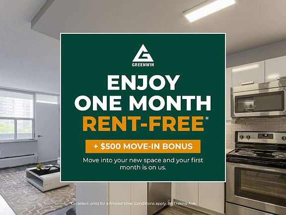 AboutWelcome to 88 Erskine - midtown Toronto's most iconic rental property featuring your very own concierge, parcel lockers and grocery store. Located just minutes from Eglinton subway station, Greenwin's flagship building - aptly known by locals as "88" - was built by our co-founder himself, Harold Green. Constructed with exceptionally large open-concept suites with stunning views of the City, 88 has been lovingly updated with extensive renovations to meet the changing needs of our renters.