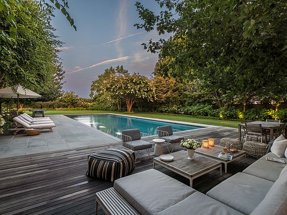 On arrival, the understated yet elegant approach yields to a truly exceptional designer's own four-bedroom cottage with plenty of bonus space to accommodate the family, guests, and staff. The main level encompasses a gracious but comfortable living room, a large and immaculate kitchen, guest suite, den, and a four-season porch overlooking spectacular grounds. A heated gunite pool centers the garden, with lounging, entertaining, and dining areas accompanied by a wood-fired grill and pizza oven. Upstairs, the primary suite is grand and offers plenty of room when privacy is needed, and there are two additional family suites as well. An elegantly designed pool house is an excellent place to relax, and an additional office a perfect place to go when focus is needed. Your own boutique resort. Available for June at $75K or any two weeks at $47.5K, July $150K or any two weeks in July at $75K.