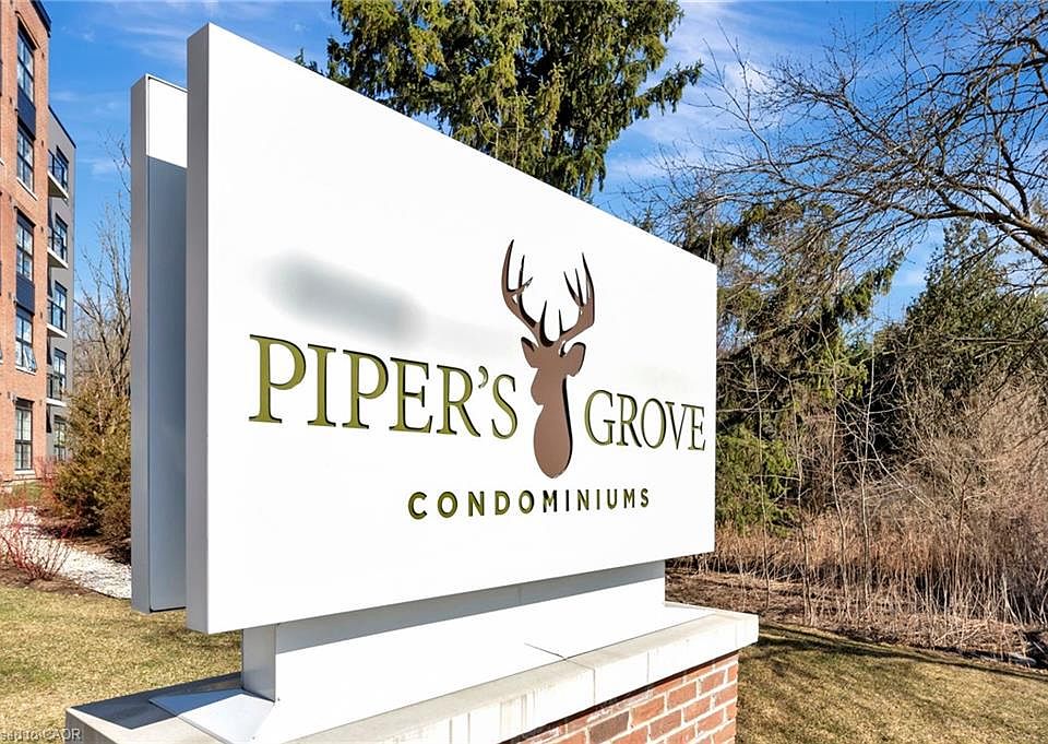 Welcome to Pipers Grove Condominiums - right in the heart of downtown Ayr! Step into this stylish Morgan model suite, offering 2 spacious bedrooms, 2 full bathrooms, and 951 sq ft of beautifully designed living space. The open-concept eat-in kitchen and living area is flooded with natural sunlight, thanks to the suites south-facing exposure - and just wait until you step out onto your private 84 sq ft balcony with serene forest views. Its the perfect spot for morning coffee or unwinding at sunset. The kitchen is a showstopper, with sleek black cabinetry, large island, granite countertops in both the kitchen and bathrooms, and a stylish tile backsplash. The primary bedroom features a spacious walk-in closet and a private ensuite with glass shower, while the second bedroom also boasts its own walk-in closet ideal for guests or a home office setup. Youll love the luxury vinyl plank flooring that flows seamlessly throughout, but one of the standout features? TWO parking spots - one covered and one surface - a rare and valuable bonus! The building itself offers a secure entrance with a video intercom system and a welcoming amenity room on the main level, complete with a kitchenette and washroom - perfect for hosting or relaxing with neighbours. Located just steps from Ayrs charming downtown shops, restaurants, and walking trails, and only a short drive to Cambridge, Kitchener, Brantford, and Woodstock - Pipers Grove is a truly exceptional place to call home.