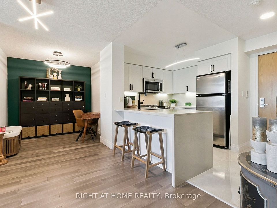 Enter a realm of modern luxury in this 1-bed + den, 1-bath condo, a 638 sq. ft haven of style that's in turnkey move-in condition. Experience the airy, open-concept living space, with thoughtful upgrades to lighting that create a spa-like feel for your end-of-day relaxation, floor-to-ceiling windows, and unobstructed views. The open concept floor plan features $30,000 in recent upgrades (2025) to kitchen with stainless steel appliances, foyer, bathroom cabinets, shower, vanity, ceramic tiles, custom closet in bedroom, and shelving in den for ample storage. This above-average well-maintained home shows pride-of-ownership and has been freshly painted. The sleek accent wall with custom shelving adds a final touch of modern to the versatile den, large enough to fit a bed, home office or children's play area. Building Amenities include guest suites, gym/exercise room, indoor pool, media room, party/meeting room, visitor parking and 24/7 concierge. Local amenities include Scarborough Town Centre, TTC and GO Transit access, Cineplex theatre, Wal-Mart, restaurants, Metro Golf Sportsplex, restaurants, and excellent schools. Come check out this beautiful unit. You will not be disappointed! Parking and locker included.