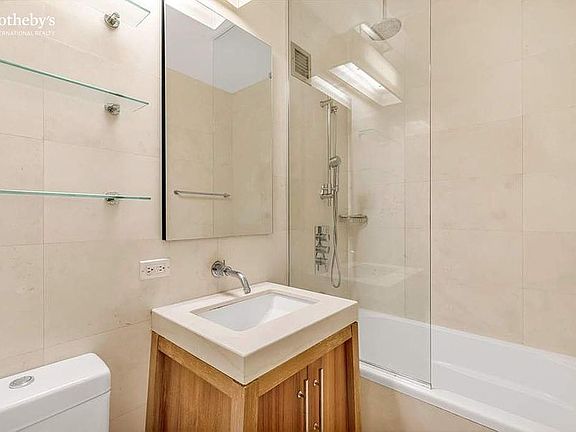Indulge in the spa-like bathroom, complete with a deep Kohler soaking tub and an overhead rain shower.