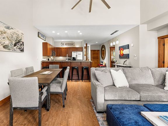 Step inside to discover a sleek Mountain Contemporary aesthetic, complete with updated finishes and tasteful furnishings. Enjoy stunning views of the surrounding mountains and Keystone ski area right from the comfort of your living room.