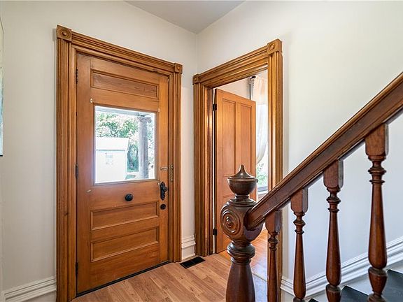 What an opportunity! This charming 2 ½ storey century home is situated on just over ½ acre and is surrounded by large mature trees, offers loads of privacy and features a classic wraparound porch for all to enjoy on those lazy summer evenings. The main level of the home offers an open concept space with the updated eat in kitchen overlooking the living room. Off of the kitchen is a sunroom with loads of windows allowing for all that natural sunlight to flood in! The main level also features a formal dining room, office (or main level bedroom should you so choose) and a 3 piece bathroom. Upstairs you will find 3 very generous sized bedrooms including the master bedroom with a sitting/dressing room, renovated 4 piece bathroom and an upper level deck. The 3rd level features an attic space which awaits your personal vision. You will find many beautiful features original to the era of the home which was built in 1911. The detached garage/workshop can accommodate up to 4 cars. You can truly enjoy the country setting here with the city conveniences and hwy accesses minutes away. There is a designated turning lane into the property and an advanced green light out which makes the egress and ingress very easy. Don't be TOO LATE*! *REG TM. RSA..