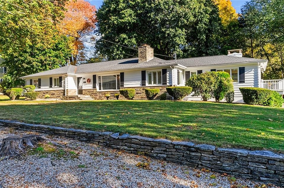 North Smithfield. One level Ranch in pristine condition. This is an exceptional home that has been meticulously cared for and significantly updated. Ideally situated just minutes away from all conveniences while offering peaceful and tranquil living. The interior features a flexible floor plan offering a range of living options for in-law arrangements or guest suites. Entering into the welcoming foyer sets the tone for the home's warmth, elegance, and open feel, with lots of natural light and high ceilings. The spacious living room is adorned by picture window, stone fireplace, and crown moldings. The bedroom wing features the spacious primary suite with two additional bedrooms, and a 4th room for office or guest bedroom with a shared full bathroom. The centerpiece of the home is the stunning St. Charles kitchen, a highly sought-after mid-century modern design featuring sleek counters, stainless steel trim, and ultra-clean lines. Off the kitchen, a quiet area serves as a den or an intimate dining room. A surprise bonus room elegantly appointed with built-in shelves, fireplace, can serve as an IN-LAW of GUEST suite. Making this complete is a full bathroom with walk-in shower and private balcony. Downstairs, the partially finished walkout basement features a family room, half-bathroom, bar area, fireplace, and a recreation room that can be converted into an IN-LAW, gym, office, or more living area. Large, flat yard for pool or play. Central Air, public water and sewer.