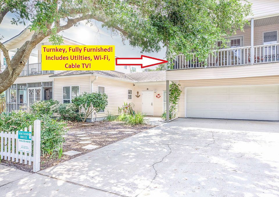 This is a 1BR 1BA apartment above the garage of a 4BR 3BA vacation rental home. Normally reserved only for the owners, this cute and comfortable unit is FULLY furnished (furniture and all kitchen necessities), INCLUDES utilities (water/sewer, electric, Cox cable TV, and Wi-Fi), separate stairway entrance, one parking space, and washer/dryer (downstairs). Balcony off living area is added SF of about 184SF. No smoking or pets, 2 persons max. 1 driveway parking space. Enter apartment by way of the side gate and outside dedicated stairs that lead only to the apartment's entry door.