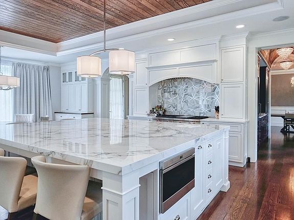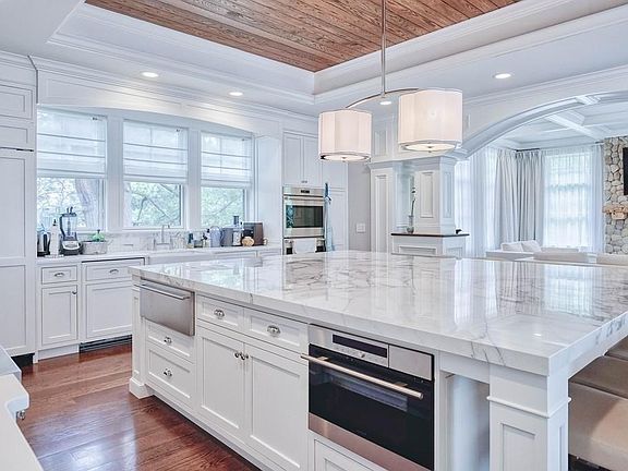 - Kit Dscrp: Pantry, Flooring - Hardwood, Countertops - Stone/Granite/Solid, Closet/Cabinets - Custom Built, Kitchen Island, Stainless Steel Appliances, Second Dishwasher, Countertops - Upgraded, Ceiling - Coffered, Wine Chiller