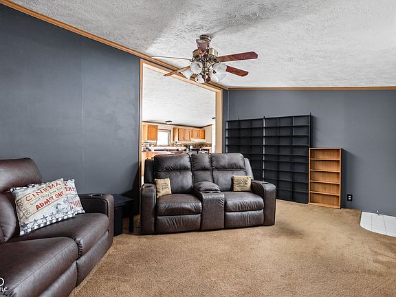 Nestled at 88 Inman DR, INGALLS, IN, this inviting home in Madison County presents an exceptional opportunity for comfortable living. The property is ready to move in and offers a welcoming atmosphere. The living room is designed as a space for relaxation and gatherings, featuring a fireplace that serves as a focal point, enhanced by the elegant touch of crown molding and the openness of a vaulted ceiling. Imagine cozy evenings spent by the fire, surrounded by the warmth and character this room exudes. The kitchen provides a functional and stylish area for meal preparation and casual dining, complete with shaker cabinets that offer ample storage, a kitchen bar for quick meals, and a kitchen peninsula that adds extra counter space, all complemented by crown molding. The primary bathroom is crafted for convenience and ease, featuring a walk-in shower that provides a refreshing and accessible experience. One of the home's three bedrooms features crown molding, adding a touch of elegance. This 1404 square foot manufactured home, built in 1998, sits on a generous 9100 square foot lot and offers two full bathrooms, a laundry room, and a patio, providing everything needed for a comfortable lifestyle. This single-story home is an ideal setting to create lasting memories.