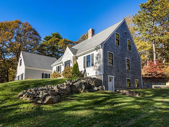 Welcome to this expansive and pristine Cape-style home in the beloved Hunter Hill Estates, where abundant windows and sliding glass doors seamlessly blend the beauty of the outdoors with the comfort of indoor living. From the moment you arrive, it's clear that the owners have meticulously maintained and thoughtfully updated every corner of this property. Elegant stone walls, manicured lawns, and winding stone pathways lead you to this inviting residence.Inside, gleaming hardwood floors and rich wood trim echo the natural surroundings just beyond your back door. The well-equipped kitchen opens to a welcoming dining area, flanked by sliding glass doors on two sides that lead to a spacious back deck. Through a set of French doors, you'll find the breathtaking living room, where cathedral ceilings and two levels of windows create a light-filled, serene atmosphere. A gas fireplace adds both warmth and ambiance, making this a cozy retreat on cooler evenings.The first floor also features a lovely primary bedroom, an oversized full bathroom, and a versatile room between the kitchen and garage - affectionately called the ''breakfast room'' by the owners - ideal as an entryway, mudroom, or sunroom. Upstairs, two additional bedrooms share a hallway and balcony overlooking the living room, offering stunning views of the backyard. A second full bathroom provides convenience and privacy for family or guests. A generous finished basement (providing an additional ~1,200 sf) with laundry and walkout access enhances the home's livability, while the extra-large two-car garage provides ample room for vehicles, storage, or a workshop. Enjoy the peaceful and private backyard from your tiered deck, beyond which an outdoor shower offers an opportunity for rejuvenation. Recent updates include most windows and exterior doors, a new electric panel, refreshed siding and trim, a complete hardscape renovation, and more. Classic yet full of surprises, this exceptional Cape offers timeless appeal, thoughtful design, and modern comfort - inside and out. Septic has passed Title 5.