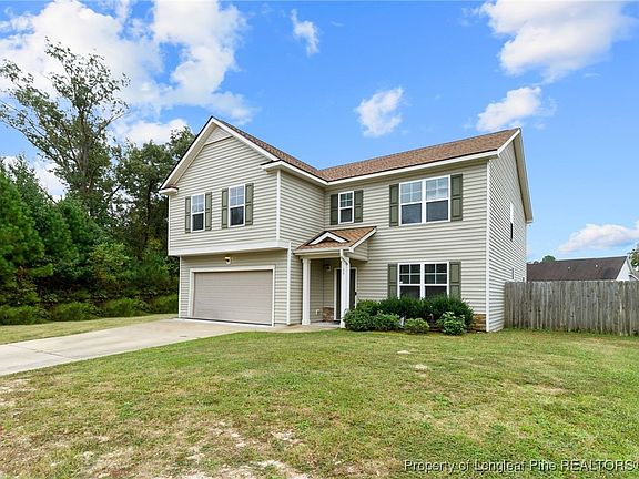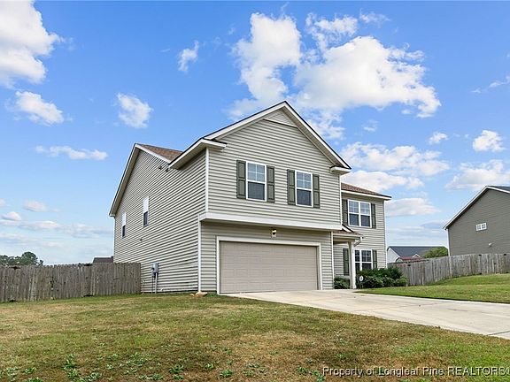 Showcasing 3,052 Square Feet, True 5 Bedrooms upstairs and a 11x13 Flex room which could be used as an office, study, 6th Bedroom on first floor, 2.5 Bathroom Beautiful Home awaits your presence and love. Boast New paint, Carpet, and Vinyl throughout entire home. Entering into the your home through a large foyer area offers a Formal dining room on the right that leads into your open concept kitchen, eat-in area and large living room with gas log fireplace with mantle, easy access to downstairs 5th Bedroom, half bath, mud area and garage, all other bedrooms, laundry, and two full bathrooms are on the second floor. Primary is large with double vanities and closets. Home sits on almost 0.5 acres with giant fenced in backyard with small fire pit. Close to Ft Liberty and Pope Army Airfield.