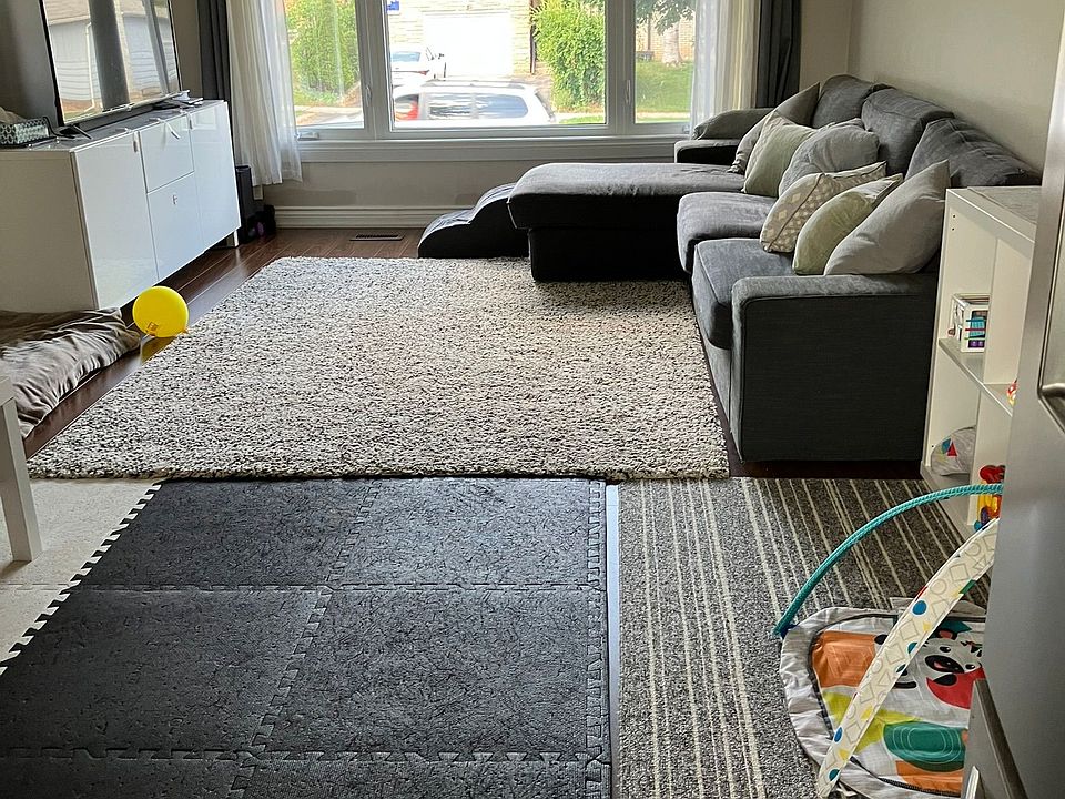 Raised Bungalow with lots of light. Spacious & bright 3 bedroom main floor. Well maintained. Kitchen has ceramic floor and ceramic backsplash with updated counters and lots of cupboards. 4 appliances - SS Fridge, Stove, B/I dishwasher, B/I microwave. Open concept living rm., Dining rm, kitchen. Walkout to raised deck from back entrance. Tandem Parking for 2 cars on driveway. Two entrances Front and back. Laundry is shared and is in garage.