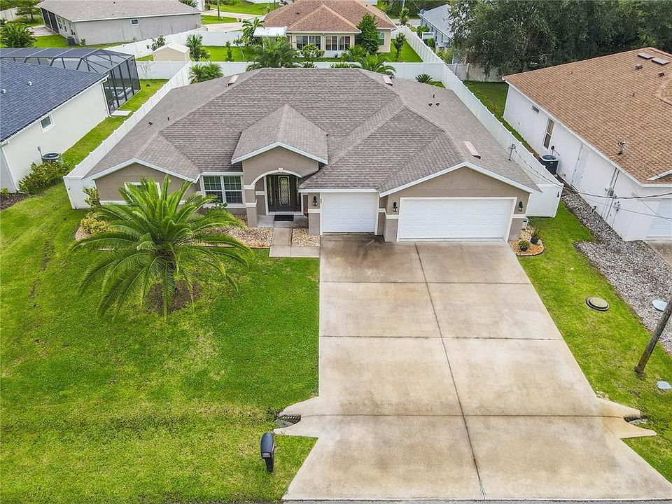 Your tropical dreams can now become your reality! Lovely Home in the city of Palm Coast (Almost New). Built in 2020 four bedrooms, two baths, and three car garage - (Augusta) floor plan from Seagate homes-. This home features a gourmet-inspired kitchen with 42' cabinets, staggered installation, crown molding and flush island quartz countertops. The split plan offers a private primary suite, highlighted architectural ceiling detail, and features two walk-in closets. Primary bathroom with dual undermount sinks set in an expanded vanity and large walk-in shower. Oasis style oversized screened lanai with aboveground extra-large spa. Enjoy the fully fenced backyard, irrigation system on well, and much more. Also, enjoy the finished floor 3-car garage for cars and toys. Located in Matanzas Woods neighborhood, it offers easy access to schools, shopping, banks, and other amenities. Easy access to Route 1 and I-95. Short ride to the ocean and beaches. Sellers' concession $5,000 toward buyer's closing cost. YOU MUST SEE. NO HOA! Schedule your showing today!