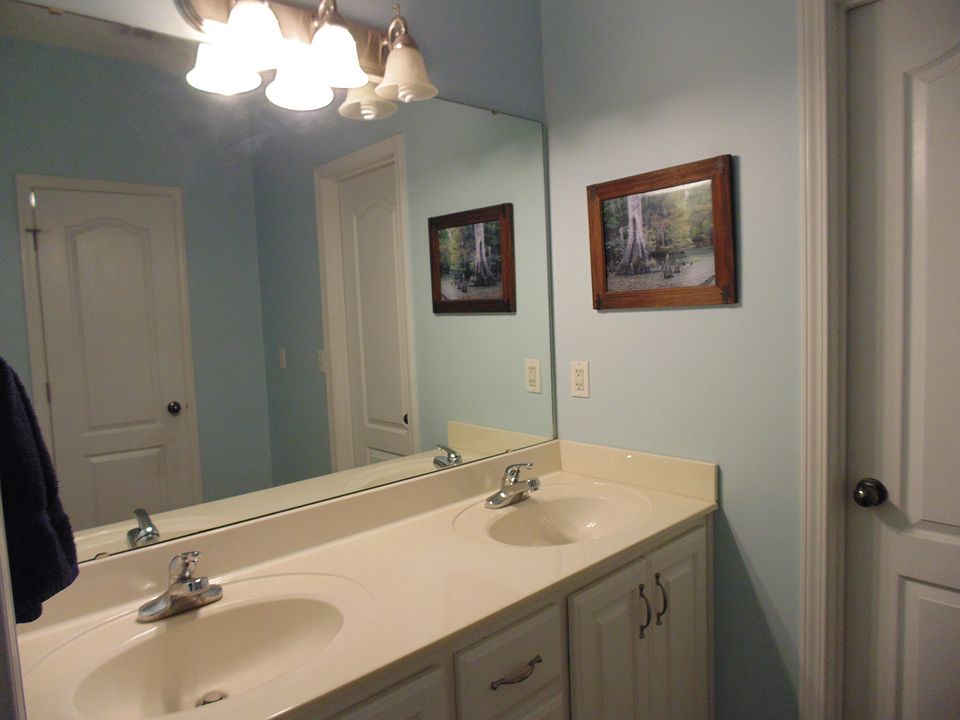 This 3 bedroom 2 bathroom home has lots to offer! Split floor plan. Large living room with tiled floors. Kitchen has beautiful wood cabinets with bar. Dining area is located off the kitchen. Master bedroom is private and master bathroom features double vanity. Large laundry room. Very private backyard with covered porch and patio area. This home has lots to offer and truly is a must see!