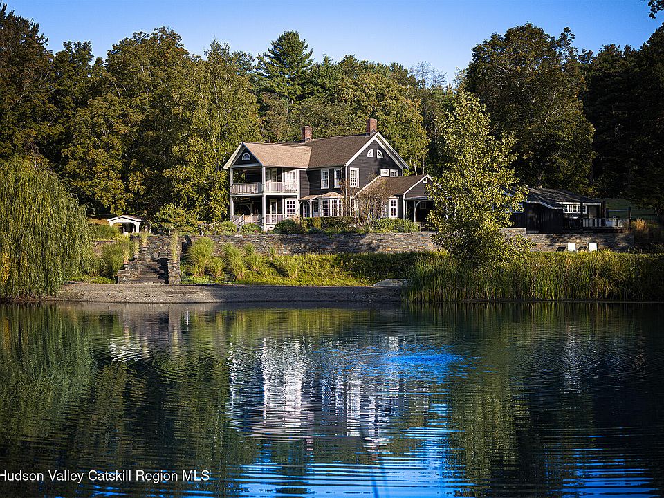 Welcome to Mac Brown Waterhouse, a storied 119-acre estate set within a hidden valley offering complete seclusion and timeless beauty. The original 1830s farmhouse is tucked away at the end of a private lane in Claverack, NY, where the road terminates in a round gravel driveway anchored by the property's original stone well. Two large ponds grace the land, one directly in front of the house that is aerated and swimmable. Sited among meadows and mature woodlands, the main house, upgraded barn, and charming studio shed are framed by terraced stonework, a network of trails, and thoughtfully designed gardens. The setting is peaceful, restorative, and deeply connected to the land, yet only a short drive to both Hudson and Great Barrington.