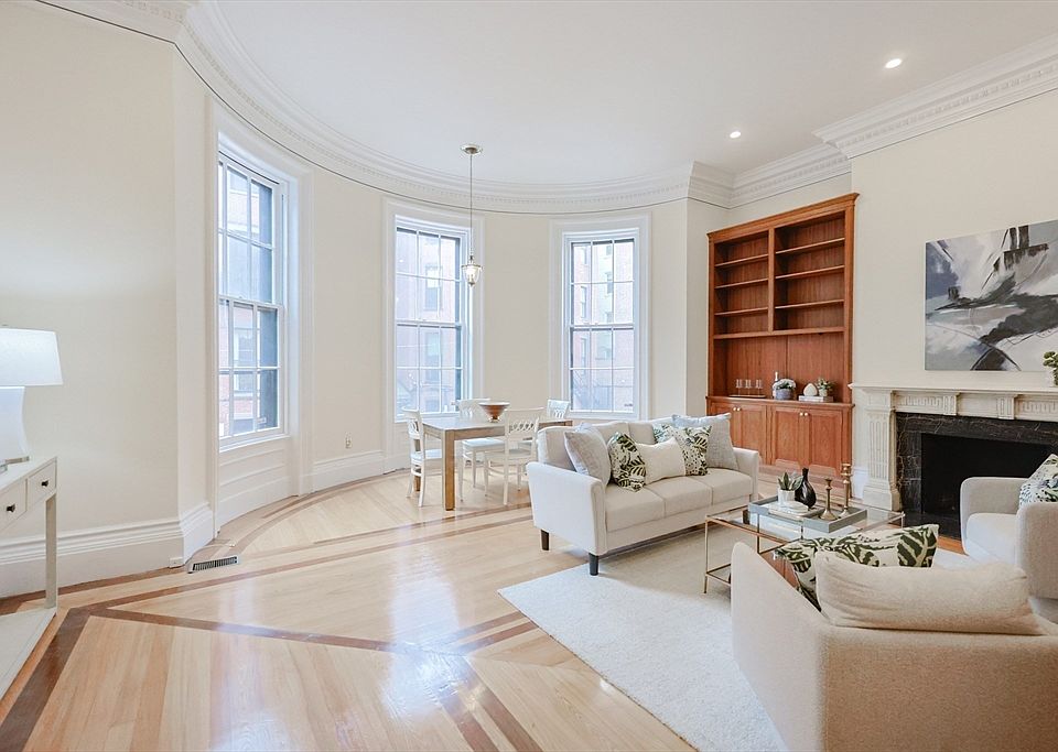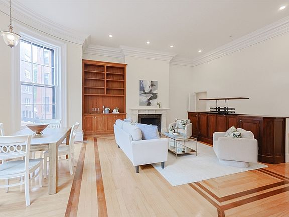 Elegant and sunny parlor duplex with 12' ceilings, gorgeous period detail, a carved marble fireplace, elaborate molding, and patterned hardwood flooring are just some of the beautiful features of this 1 bed, 1 bath condo. Oversized windows with walnut built-in bookshelves and a mahogany entertainment center, including a murphy bed, compliment the living room and provide character and flexible storage options. A renovated kitchen with Miele, Decor, and Bosch appliances, plentiful cabinets, and polished-stone counter-tops provide for excellent meal prep and cooking. The garden level includes an extra-large bedroom retreat with several double closets, including a large walk-in closet. There is also a separate area ideal for a home office or nursery. Central air-conditioning and in unit laundry round out this fabulous condo. Prime Marlborough Street location two blocks from the Public Garden offers the best of city living. Extremely easy to show this time around!