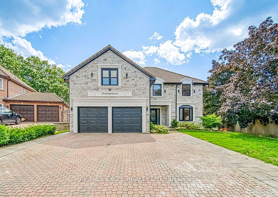 Super rare opportunity to find the lucky number '88' in one of Markham's most prestigious neighborhoods and tree-lined cul-de-sacs! Impressive 60x283 ft pie lot with over 4,500 sq ft of living area. Newly renovated from top to bottom! Impeccable natural stone facade. Slate roofs can last over 100 years! Super long and wide driveway can park 8 cars! Open-concept design with large windows that flood the interior with abundant natural light. Smooth ceilings, crown molding, coffered ceilings, and pot lights throughout the first floor. Upgraded hardwood flooring, oak stairs, and steel pickets. The gourmet kitchen features top-of-the-line stainless steel appliances, a central island, quartz countertops, and custom cabinetry providing ample storage. The fully finished walk-out basement is designed for extra living space and potential rental income. It includes a kitchen, dining area, 3-piece ensuite, living area, and bedroom. A meticulously landscaped backyard offers a serene retreat with a super large deck, BBQ, and sitting area, complete with lush greenery and ample space for outdoor dining or relaxation. This home offers the perfect balance of privacy and convenience, with easy access to top-rated schools, shopping centres, restaurants, supermarkets, LA Fitness, Hwy 404 & 407, and all other amenities! 88 Montgomery Ct is more than just a home! **EXTRAS** 2 Fridges 2 Stoves, Range Hood, B/I Dishwasher, Washer/Dryer, All Elf's All Window Cov, Garden Shed. Cvac, Cac Pot Lights