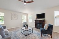 Built-in fireplaceShiplap islandGranite countersUpdated lightingSpa-like bathWood-look tileCeiling fans