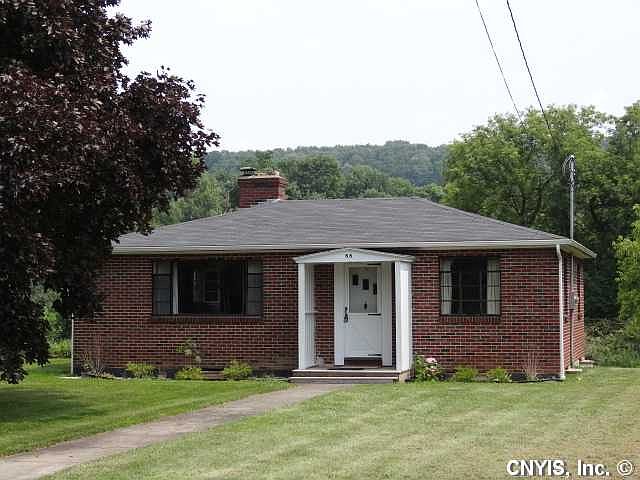 Neat and Simple Ranch living, c.1951 on pretty +/-2.5 acre lot in the Village of Earlville offers two bedrooms, full bath, LR/fp-DR, K w/appliances & Large four season sun room! Lower level offers under the house garage & utilities, extra bedroom & family room. First time on the market!