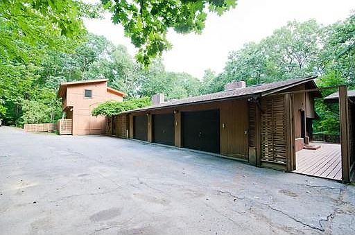 Custom built Contemporary with vertical siding exterior, melds with surrounding wooded lot set back off Nashua Road. This classic contemporary "DECK HOUSE" will draw you in with the Interior offering an open concept main floor with high ceilings accented by a rich combination of Cedar and Mahogany wood creating warm and inviting spaces. Filled with natural light captured by the large windows framing the great outdoors from every room. Step out from the kitchen, dining, family or living room to the large wrap around deck overlooking your serene and private 12+ acre lot. Well maintained by it's original designer and owners, this home is sure to have all you are looking for. Added in 2004 to blend with the existing structures is a 3 level 1700+ sq foot Studio with attached 12 x 36 Garage with 12 foot ceilings, purposed for many uses. Living in a Deck House is described as a quiet statement about ones own self-confidence - could that be you?