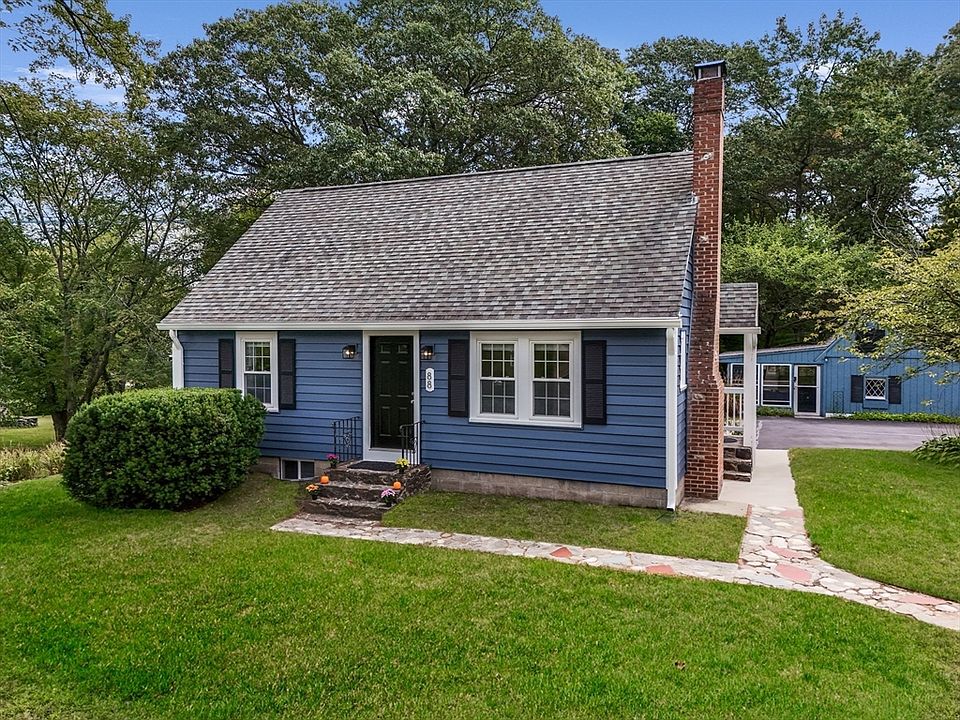 Charming 3-bedroom cape in the desirable town of Boylston is ready for its next chapter! Step inside to find a bright living room with a brick fireplace, hardwood floors, chair rail, and plenty of natural light. The eat-in kitchen features white cabinetry, generous counter space, and a dining area. The first floor also includes two comfortable bedrooms with hardwood flooring and a full bath. Upstairs offers a third bedroom plus a home office. The finished lower level provides a versatile bonus room, ideal for a playroom or family space. Outside, enjoy the detached sunroom, patio, and a paved driveway with ample parking. With brand new maintenance-free luxury vinyl siding, a newer roof, and a location close to shopping, dining, and major highways, this is a commuter’s dream and the perfect place to call home!